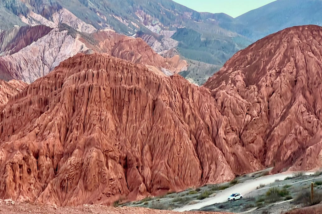 Posteriormente, en el vehículo recorreremos el Hermoso Paseo de los Colorados ubicado a las espaldas del Cerro de 7 Colores. Este paseo tiene un largo de aproximadamente 3 Kilómetros y aquí los pasajeros tendrán la posibilidad de hacer una pequeña caminata para así poder apreciar el paisaje y tomar hermosas fotografías